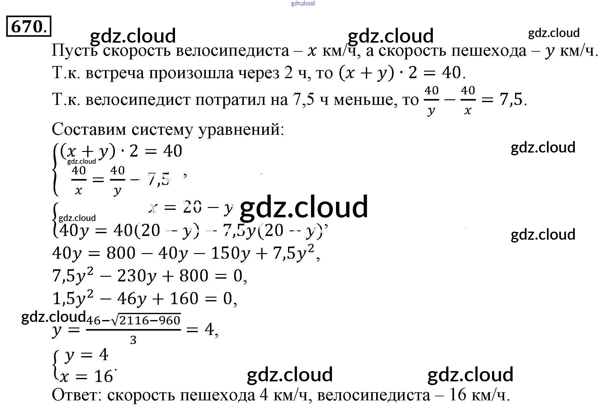 Ответ на задание 670 Учебник Алгебра за 9 (девятый) класс Алимов, Колягин, Сидоров 2014 ФГОС онлайн и без номера телефона.