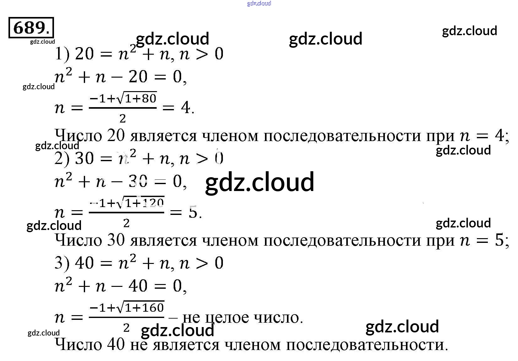 Ответ на задание 689 Учебник Алгебра за 9 (девятый) класс Алимов, Колягин, Сидоров 2014 ФГОС онлайн и без номера телефона.