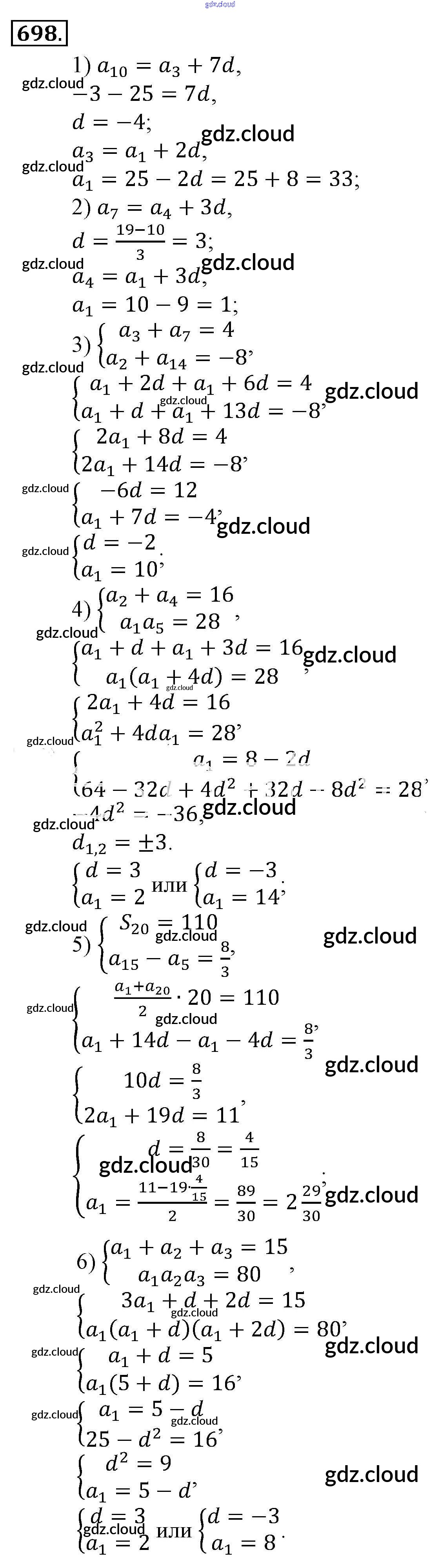 Ответ на задание 698 Учебник Алгебра за 9 (девятый) класс Алимов, Колягин, Сидоров 2014 ФГОС онлайн и без номера телефона.