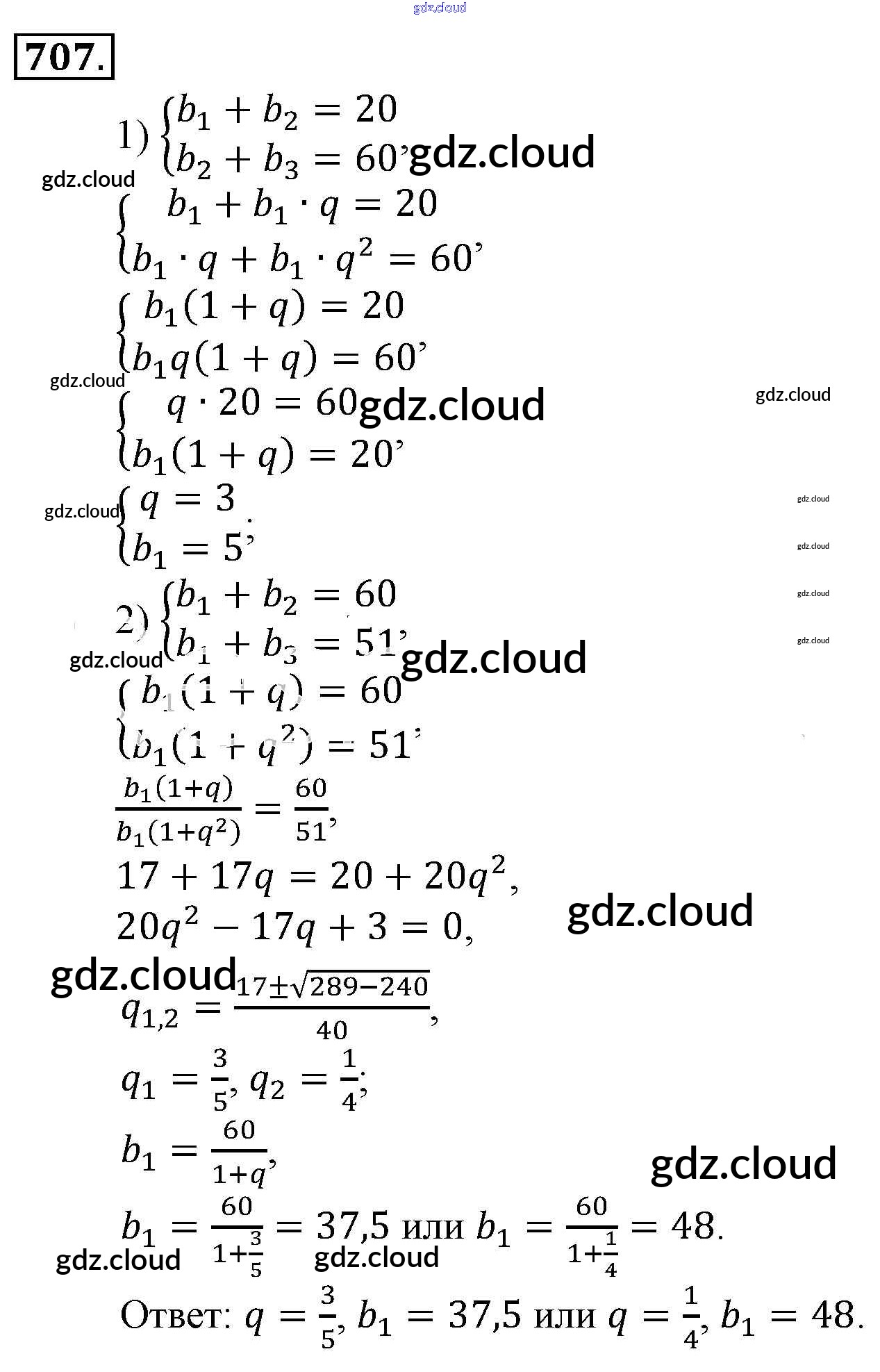 Ответ на задание 707 Учебник Алгебра за 9 (девятый) класс Алимов, Колягин, Сидоров 2014 ФГОС онлайн и без номера телефона.