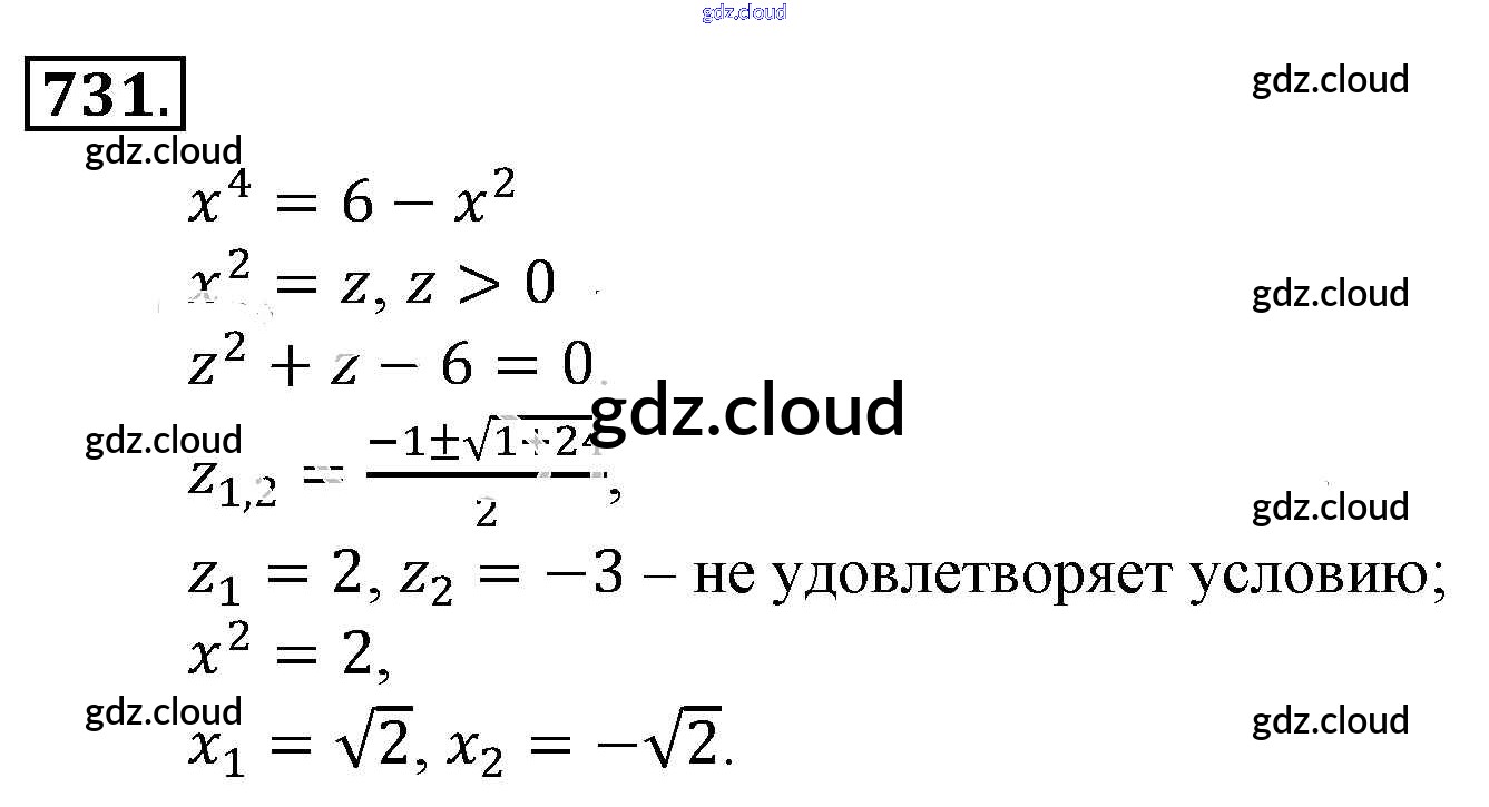 Ответ на задание 731 Учебник Алгебра за 9 (девятый) класс Алимов, Колягин, Сидоров 2014 ФГОС онлайн и без номера телефона.