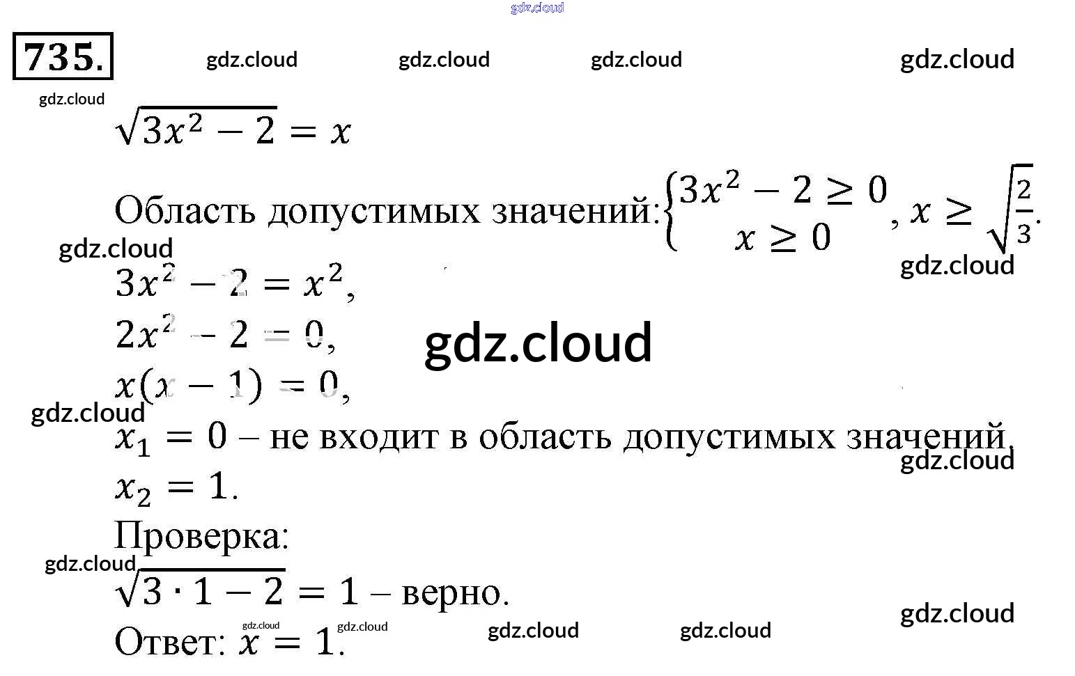 Ответ на задание 735 Учебник Алгебра за 9 (девятый) класс Алимов, Колягин, Сидоров 2014 ФГОС онлайн и без номера телефона.