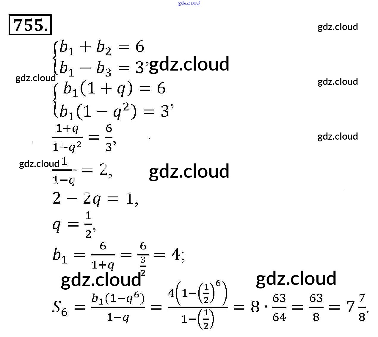 Ответ на задание 755 Учебник Алгебра за 9 (девятый) класс Алимов, Колягин, Сидоров 2014 ФГОС онлайн и без номера телефона.