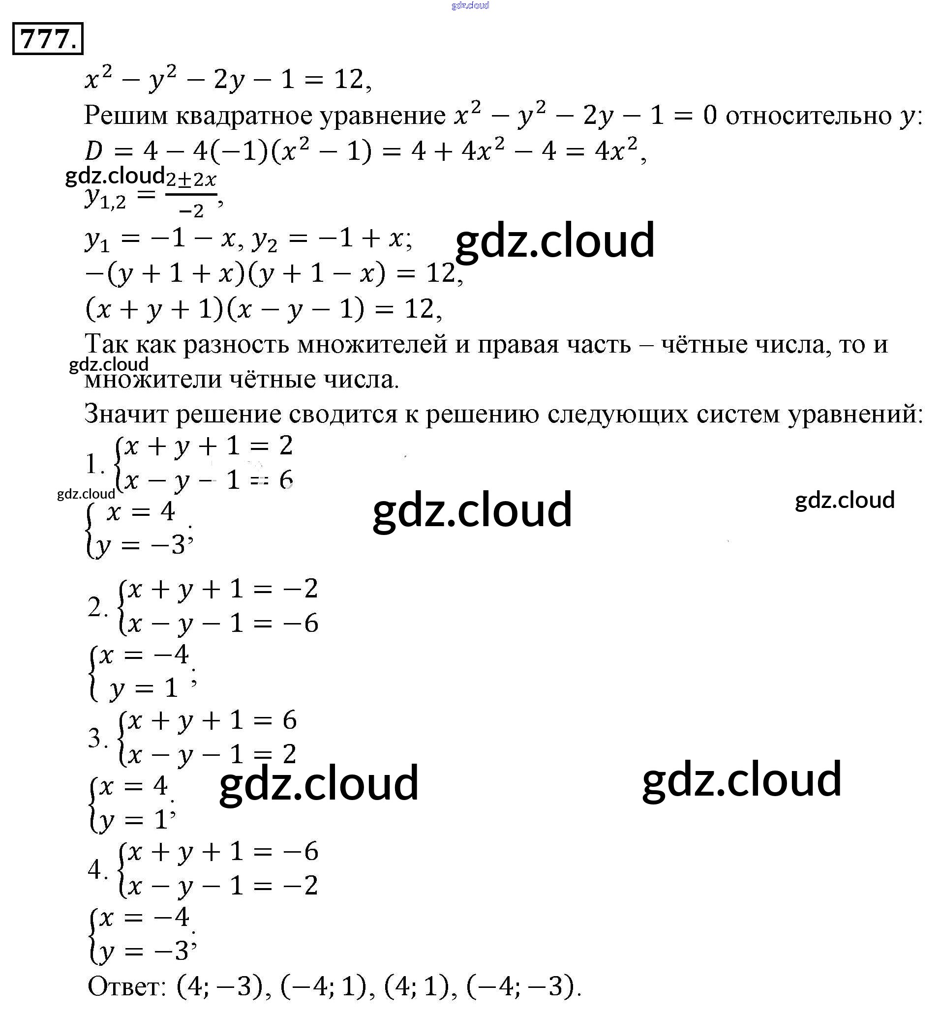 Ответ на задание 777 Учебник Алгебра за 9 (девятый) класс Алимов, Колягин, Сидоров 2014 ФГОС онлайн и без номера телефона.