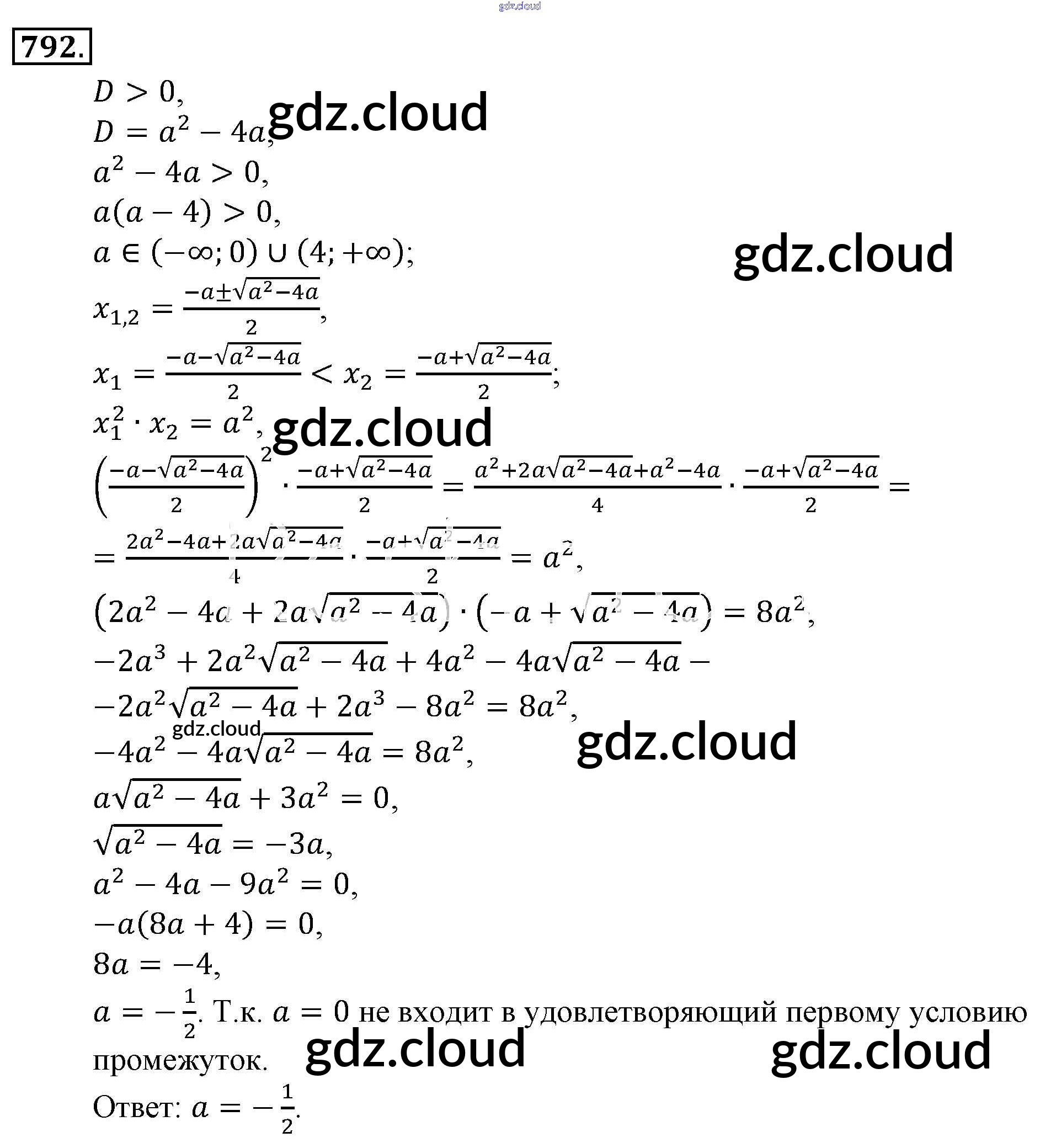 Ответ на задание 792 Учебник Алгебра за 9 (девятый) класс Алимов, Колягин, Сидоров 2014 ФГОС онлайн и без номера телефона.