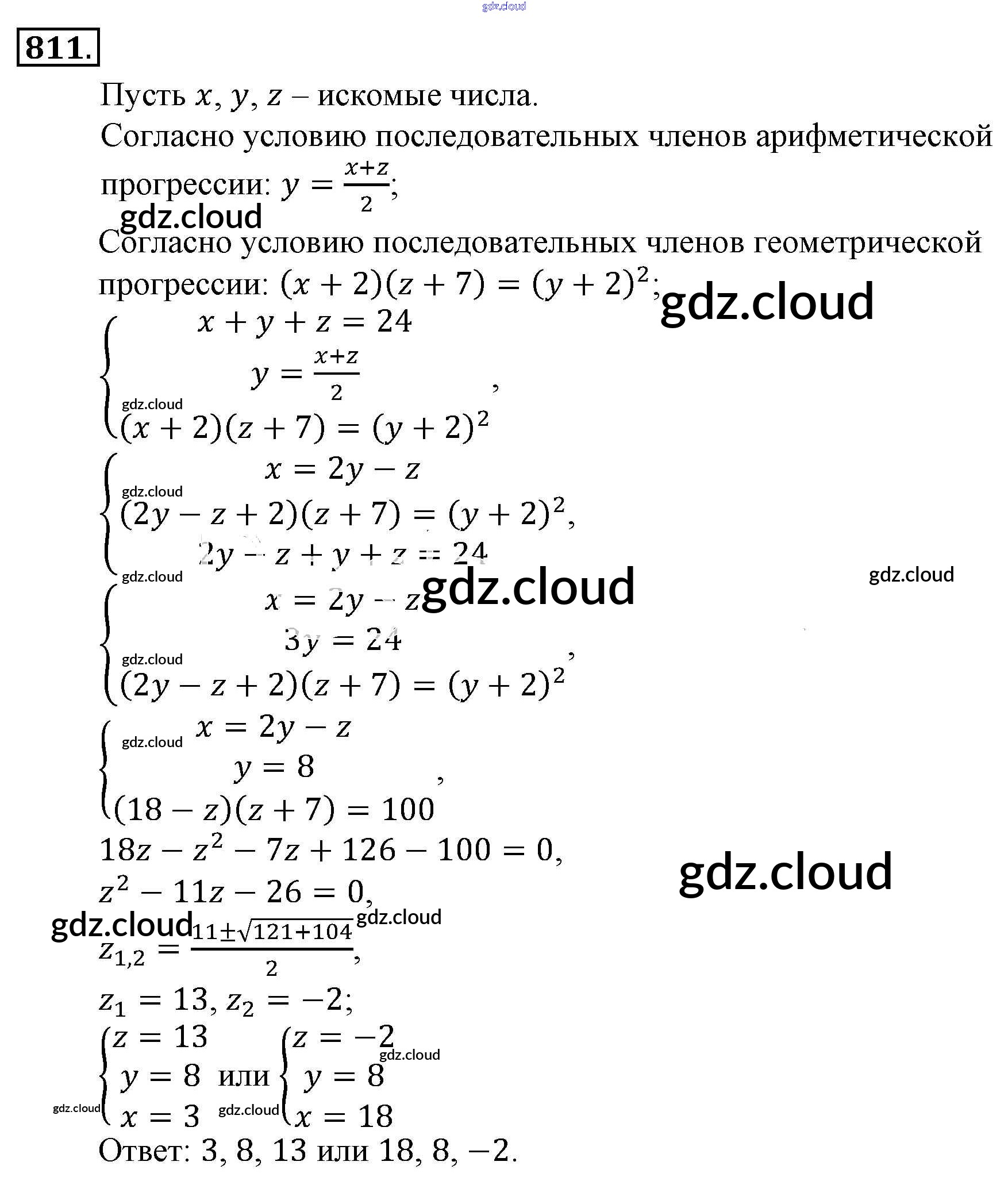 Ответ на задание 811 Учебник Алгебра за 9 (девятый) класс Алимов, Колягин, Сидоров 2014 ФГОС онлайн и без номера телефона.