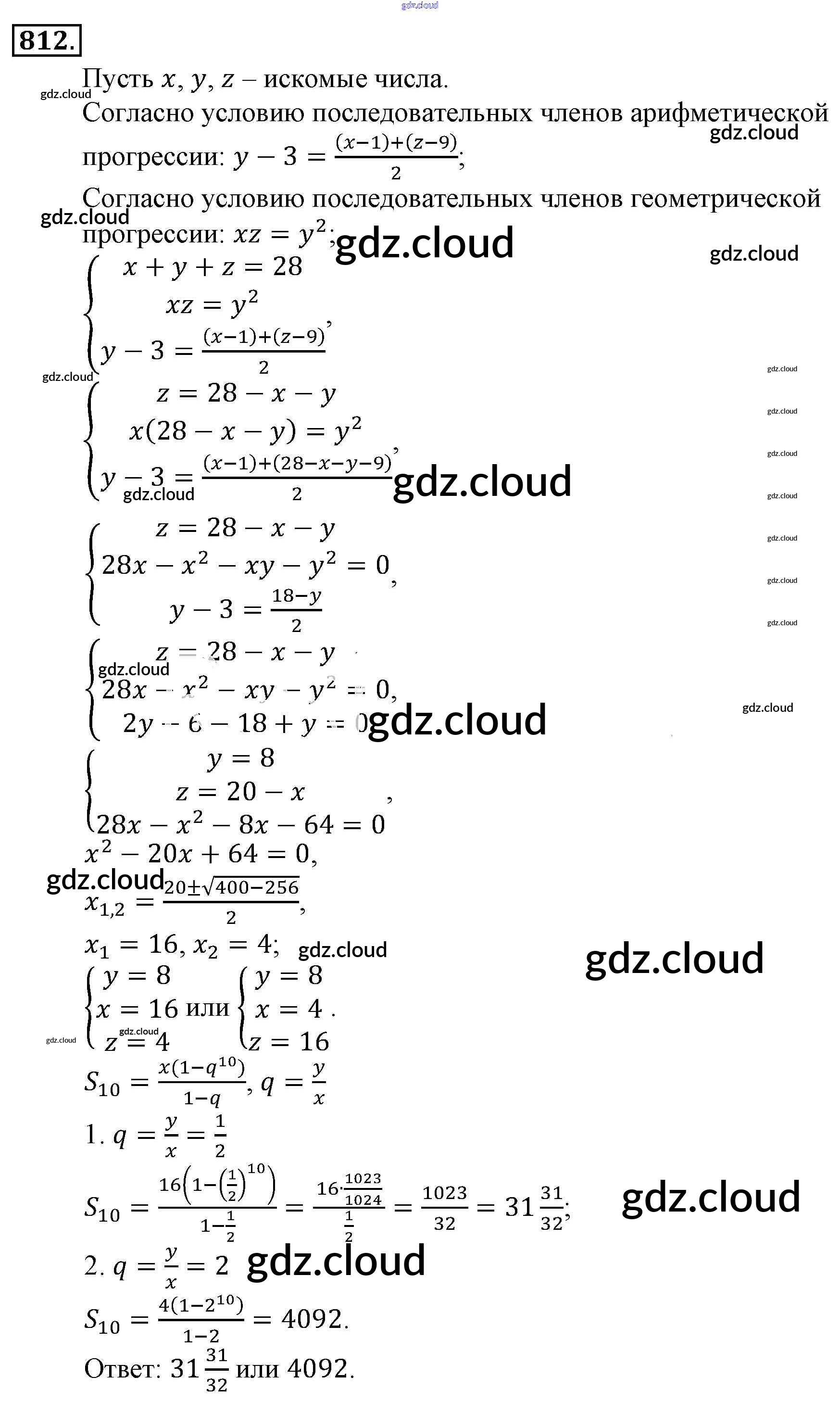 Ответ на задание 812 Учебник Алгебра за 9 (девятый) класс Алимов, Колягин, Сидоров 2014 ФГОС онлайн и без номера телефона.