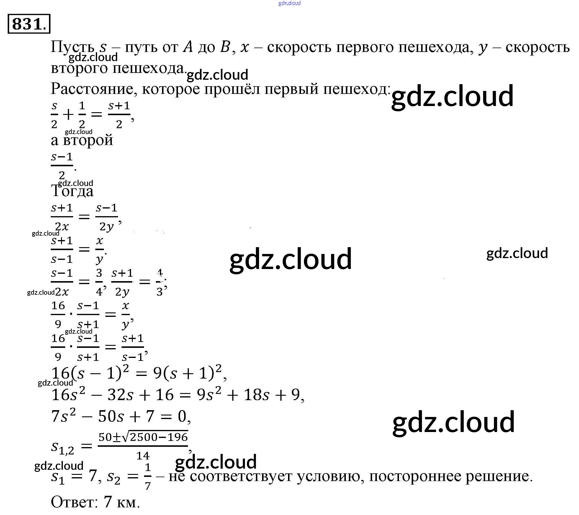 Ответ на задание 831 Учебник Алгебра за 9 (девятый) класс Алимов, Колягин, Сидоров 2014 ФГОС онлайн и без номера телефона.