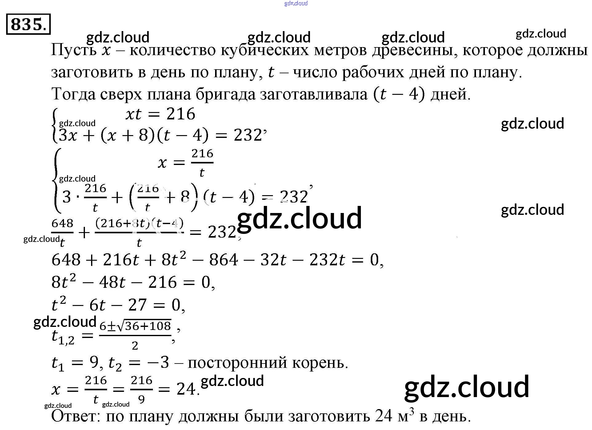 Ответ на задание 835 Учебник Алгебра за 9 (девятый) класс Алимов, Колягин, Сидоров 2014 ФГОС онлайн и без номера телефона.