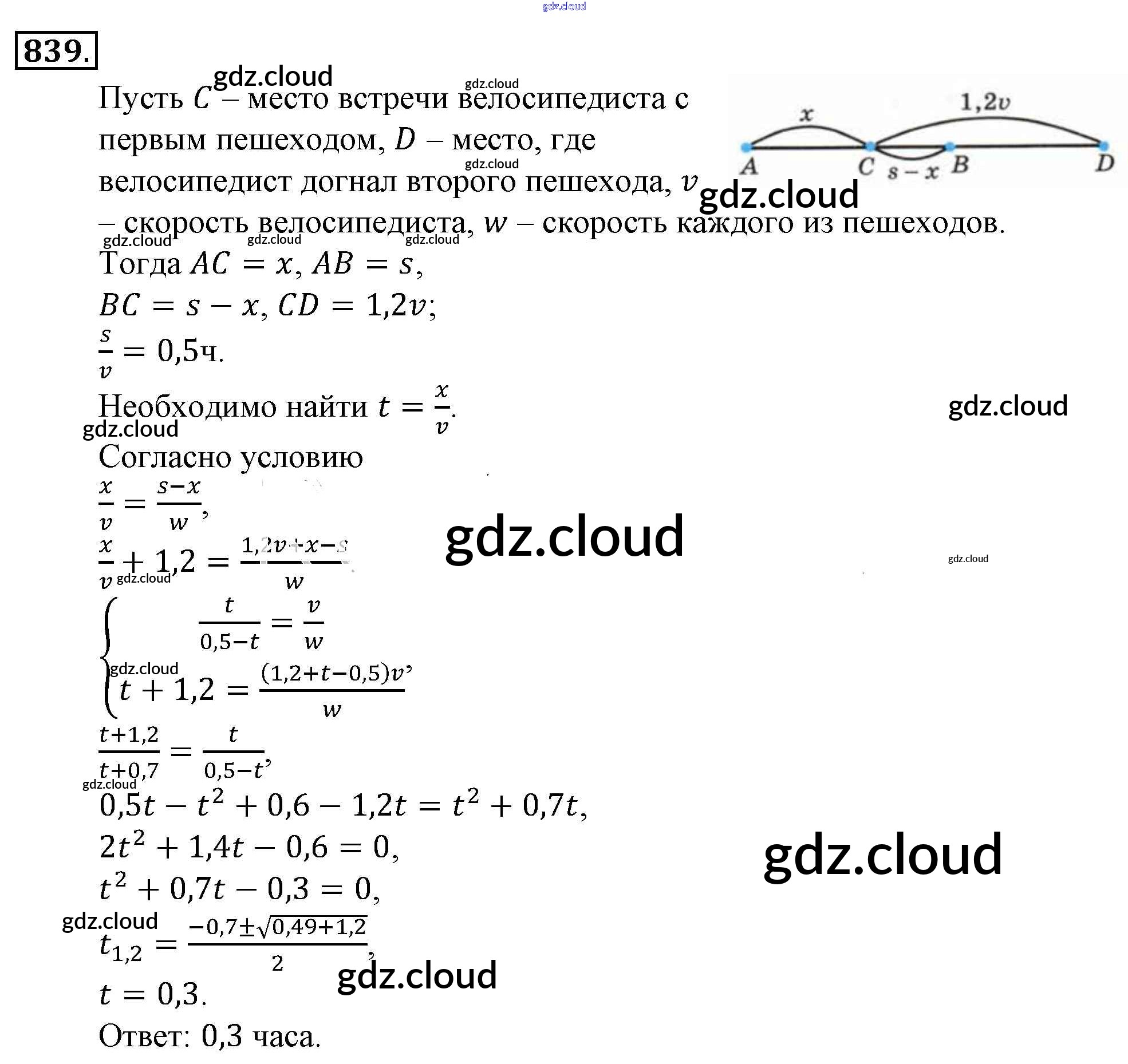 Ответ на задание 839 Учебник Алгебра за 9 (девятый) класс Алимов, Колягин, Сидоров 2014 ФГОС онлайн и без номера телефона.