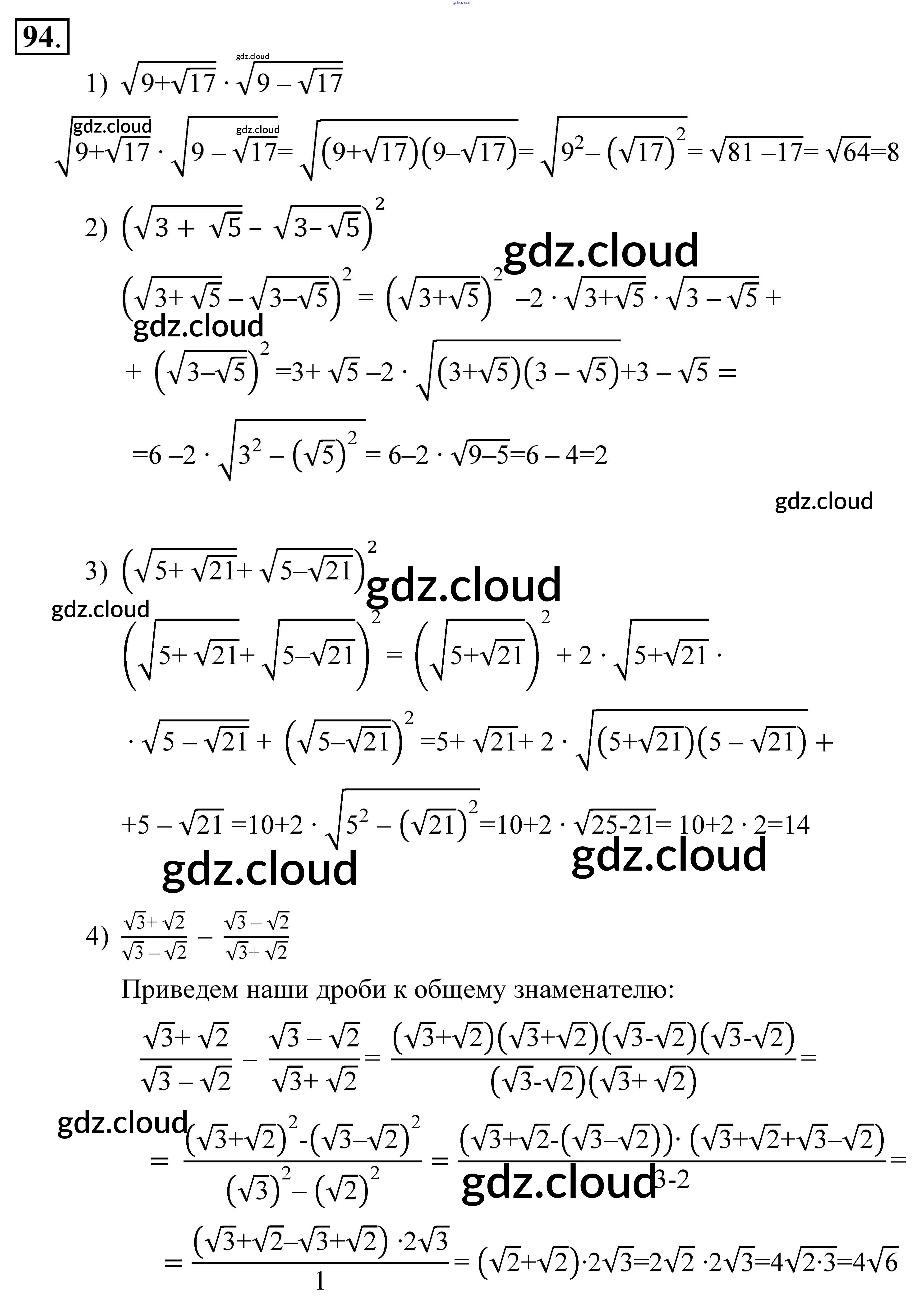 Ответ на задание 94 Учебник Алгебра за 9 (девятый) класс Алимов, Колягин, Сидоров 2014 ФГОС онлайн и без номера телефона.