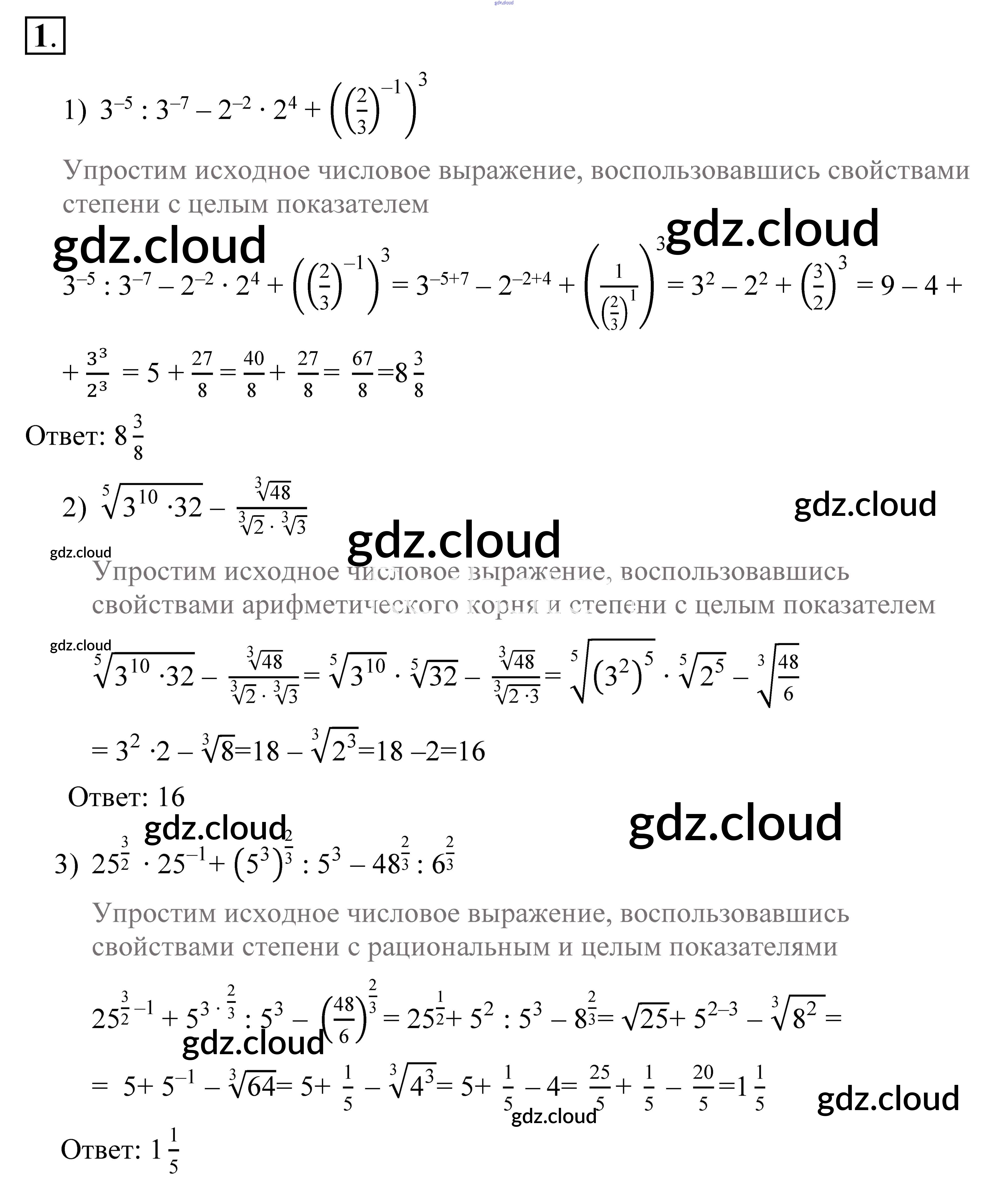 Ответ на задание №1 Учебник Алгебра за 9 (девятый) класс Алимов, Колягин, Сидоров 2014
