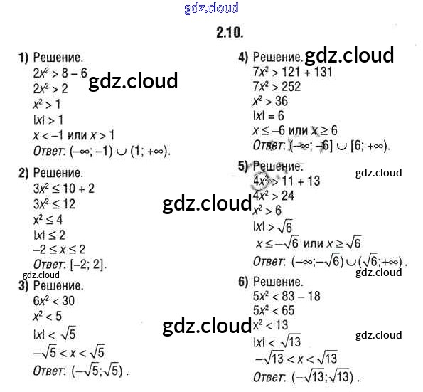 Ответ на задание 2.10 Учебник Алгебра за 9 (девятый) класс Кузнецова, Муравьева, Шнеперман 2015 онлайн и без номера телефона.