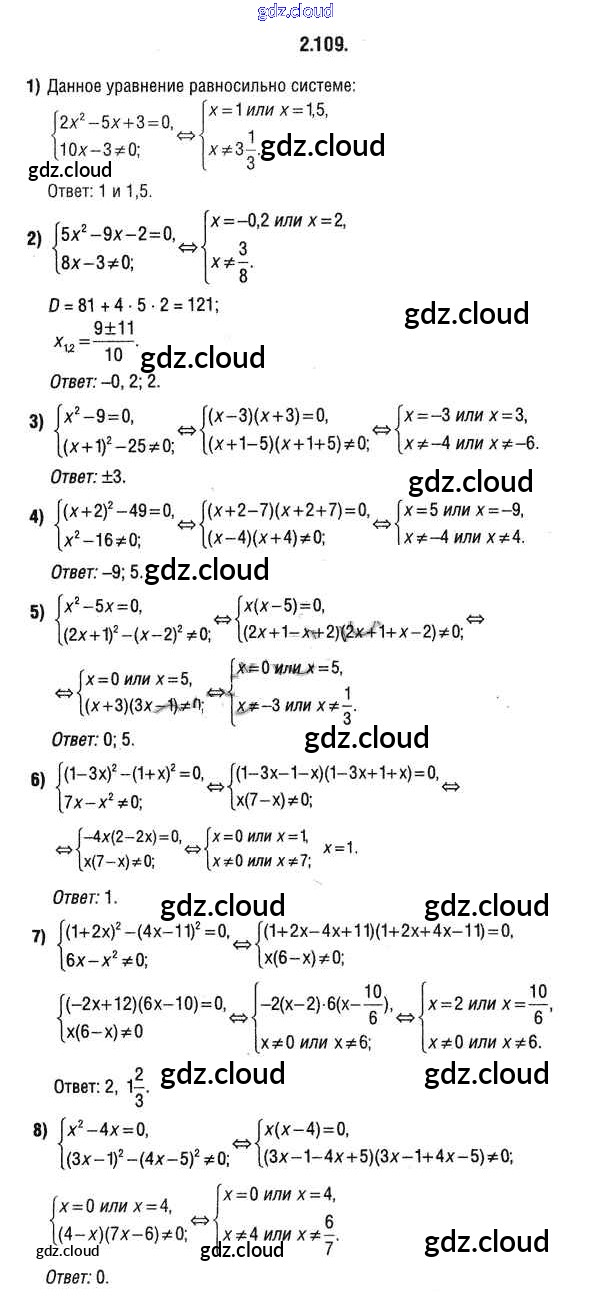 Ответ на задание 2.109 Учебник Алгебра за 9 (девятый) класс Кузнецова, Муравьева, Шнеперман 2015 онлайн и без номера телефона.
