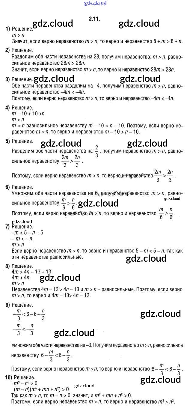Ответ на задание 2.11 Учебник Алгебра за 9 (девятый) класс Кузнецова, Муравьева, Шнеперман 2015 онлайн и без номера телефона.
