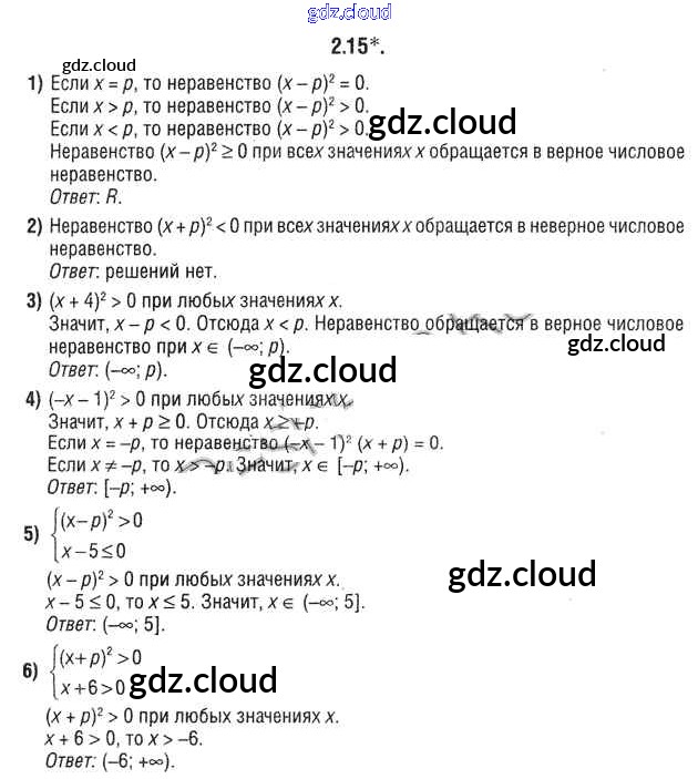 Ответ на задание 2.15 Учебник Алгебра за 9 (девятый) класс Кузнецова, Муравьева, Шнеперман 2015 онлайн и без номера телефона.