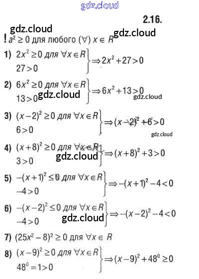 Ответ на задание 2.16 Учебник Алгебра за 9 (девятый) класс Кузнецова, Муравьева, Шнеперман 2015 онлайн и без номера телефона.