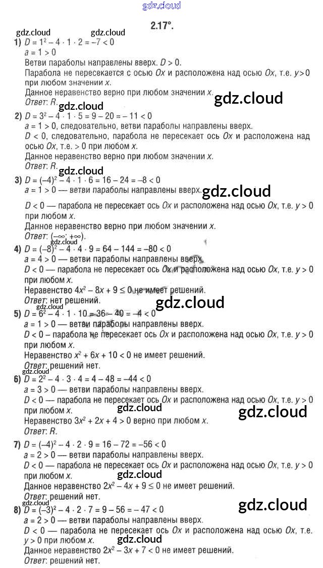 Ответ на задание 2.17 Учебник Алгебра за 9 (девятый) класс Кузнецова, Муравьева, Шнеперман 2015 онлайн и без номера телефона.
