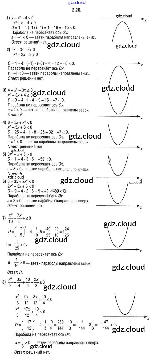 Ответ на задание 2.20 Учебник Алгебра за 9 (девятый) класс Кузнецова, Муравьева, Шнеперман 2015 онлайн и без номера телефона.