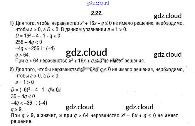 Ответ на задание 2.22 Учебник Алгебра за 9 (девятый) класс Кузнецова, Муравьева, Шнеперман 2015 онлайн и без номера телефона.