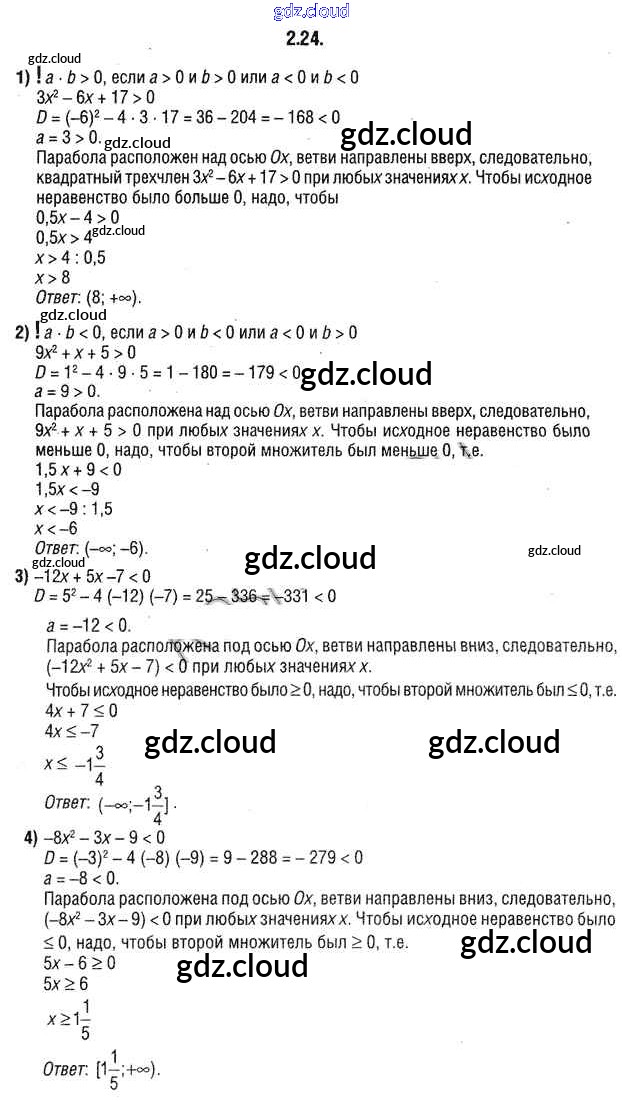 Ответ на задание 2.24 Учебник Алгебра за 9 (девятый) класс Кузнецова, Муравьева, Шнеперман 2015 онлайн и без номера телефона.