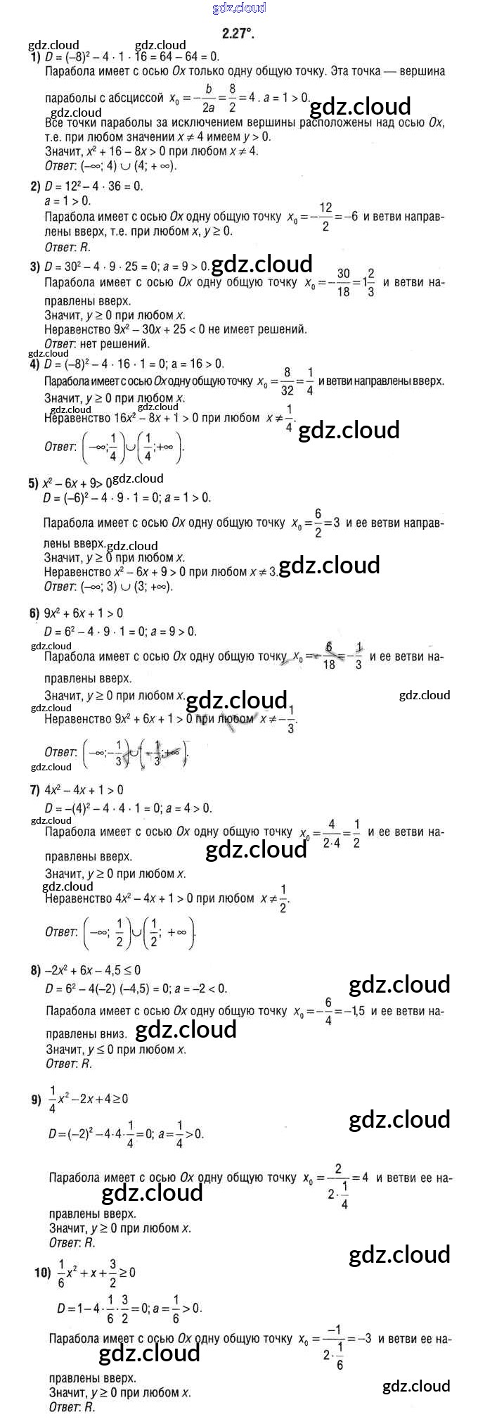 Ответ на задание 2.27 Учебник Алгебра за 9 (девятый) класс Кузнецова, Муравьева, Шнеперман 2015 онлайн и без номера телефона.