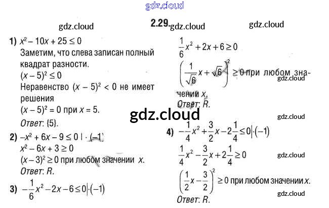 Ответ на задание 2.29 Учебник Алгебра за 9 (девятый) класс Кузнецова, Муравьева, Шнеперман 2015 онлайн и без номера телефона.