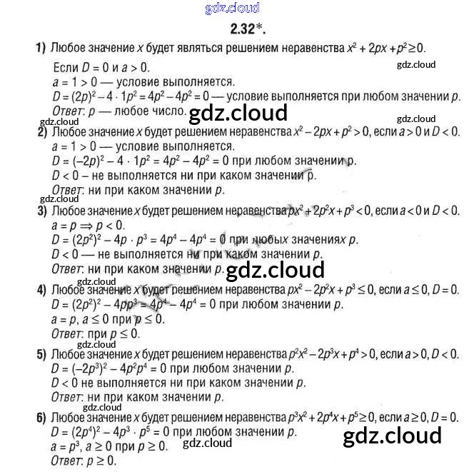 Ответ на задание 2.32 Учебник Алгебра за 9 (девятый) класс Кузнецова, Муравьева, Шнеперман 2015 онлайн и без номера телефона.
