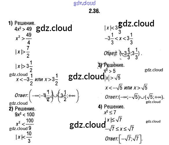 Ответ на задание 2.36 Учебник Алгебра за 9 (девятый) класс Кузнецова, Муравьева, Шнеперман 2015 онлайн и без номера телефона.