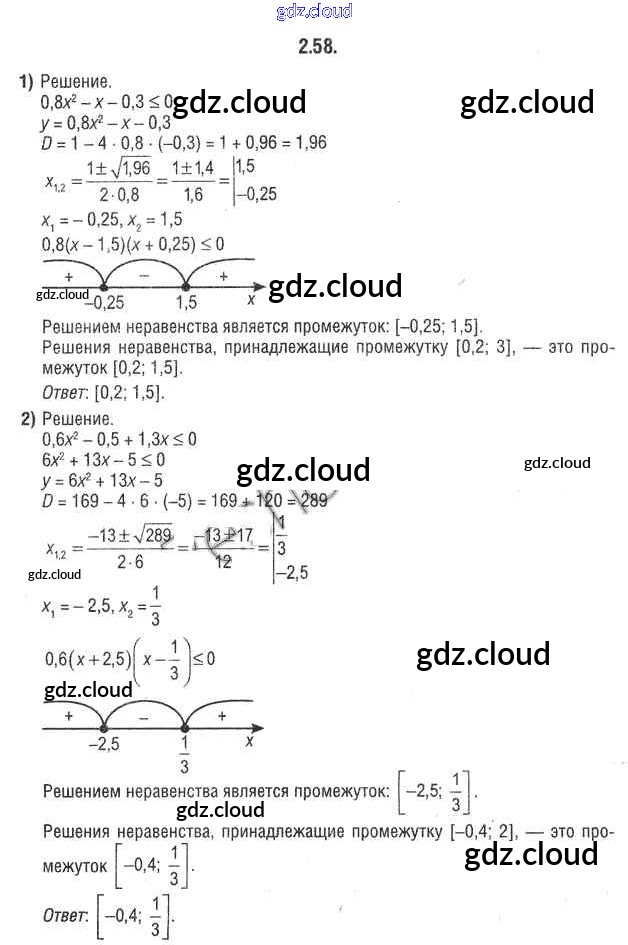 Ответ на задание 2.58 Учебник Алгебра за 9 (девятый) класс Кузнецова, Муравьева, Шнеперман 2015 онлайн и без номера телефона.