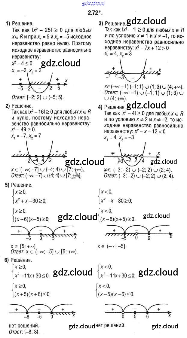 Ответ на задание 2.72 Учебник Алгебра за 9 (девятый) класс Кузнецова, Муравьева, Шнеперман 2015 онлайн и без номера телефона.
