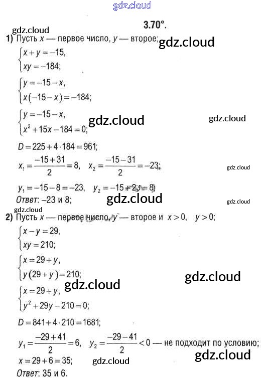 Ответ на задание 3.70 Учебник Алгебра за 9 (девятый) класс Кузнецова, Муравьева, Шнеперман 2015 онлайн и без номера телефона.