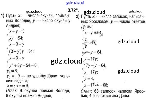 Ответ на задание 3.72 Учебник Алгебра за 9 (девятый) класс Кузнецова, Муравьева, Шнеперман 2015 онлайн и без номера телефона.