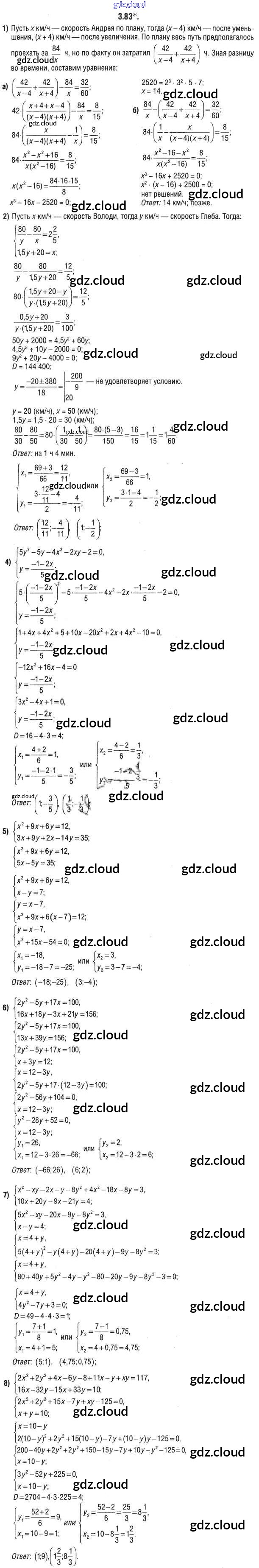 Ответ на задание 3.83 Учебник Алгебра за 9 (девятый) класс Кузнецова, Муравьева, Шнеперман 2015 онлайн и без номера телефона.