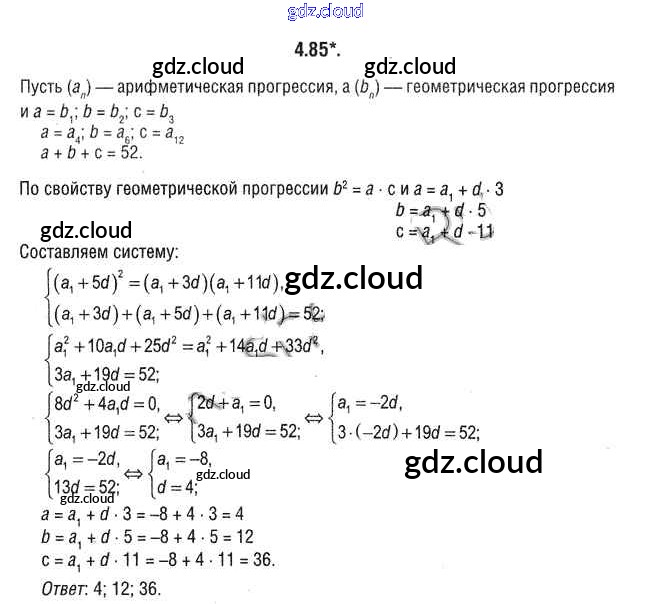 Ответ на задание 4.85 Учебник Алгебра за 9 (девятый) класс Кузнецова, Муравьева, Шнеперман 2015 онлайн и без номера телефона.