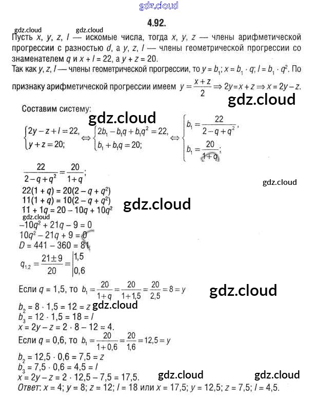 Ответ на задание 4.92 Учебник Алгебра за 9 (девятый) класс Кузнецова, Муравьева, Шнеперман 2015 онлайн и без номера телефона.