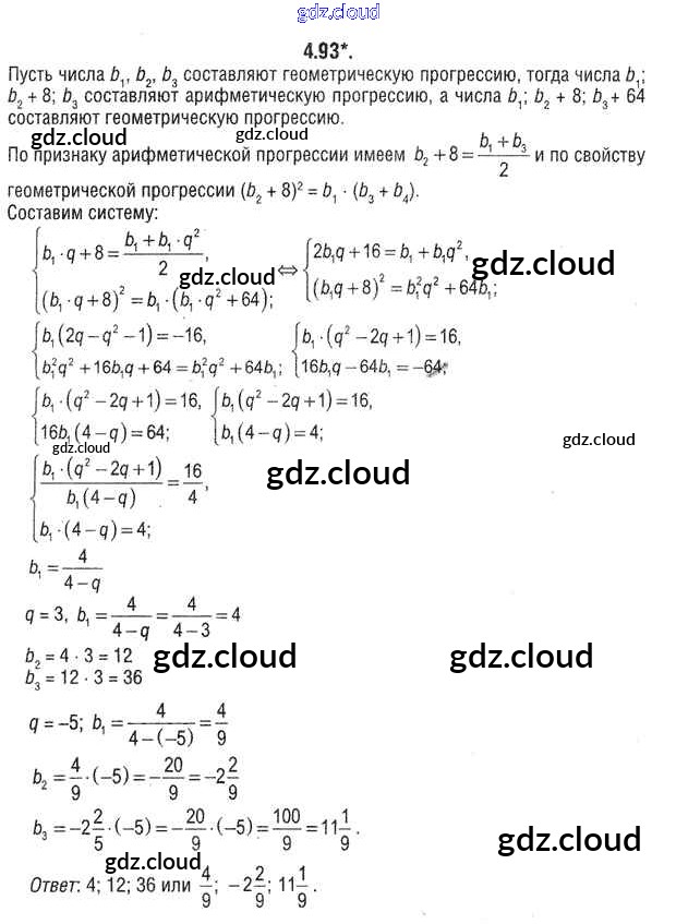 Ответ на задание 4.93 Учебник Алгебра за 9 (девятый) класс Кузнецова, Муравьева, Шнеперман 2015 онлайн и без номера телефона.