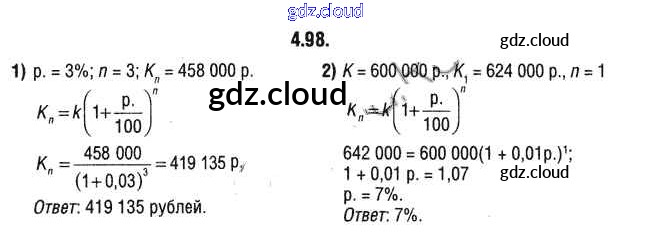 Ответ на задание 4.98 Учебник Алгебра за 9 (девятый) класс Кузнецова, Муравьева, Шнеперман 2015 онлайн и без номера телефона.