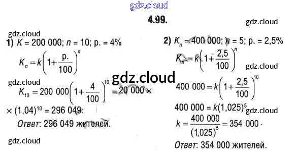 Ответ на задание 4.99 Учебник Алгебра за 9 (девятый) класс Кузнецова, Муравьева, Шнеперман 2015 онлайн и без номера телефона.