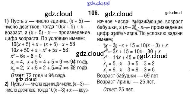 Ответ на задание 106 Учебник Алгебра за 9 (девятый) класс Кузнецова, Муравьева, Шнеперман 2015 онлайн и без номера телефона.
