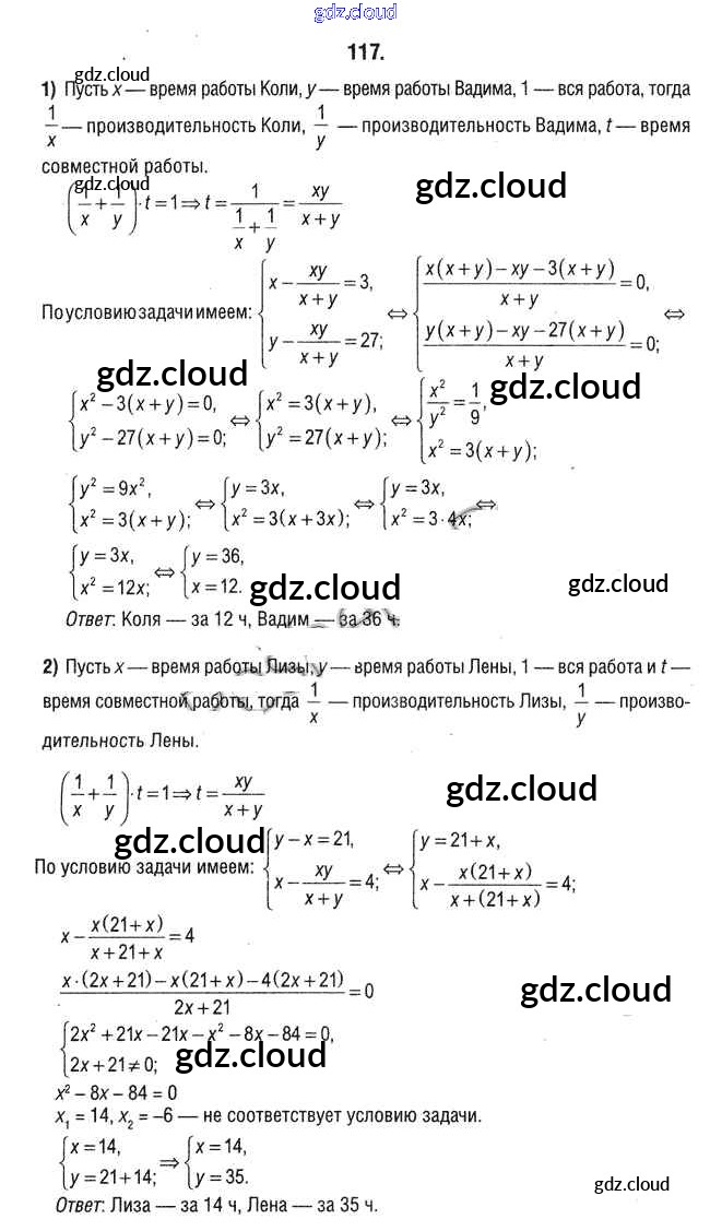 Ответ на задание 117 Учебник Алгебра за 9 (девятый) класс Кузнецова, Муравьева, Шнеперман 2015 онлайн и без номера телефона.