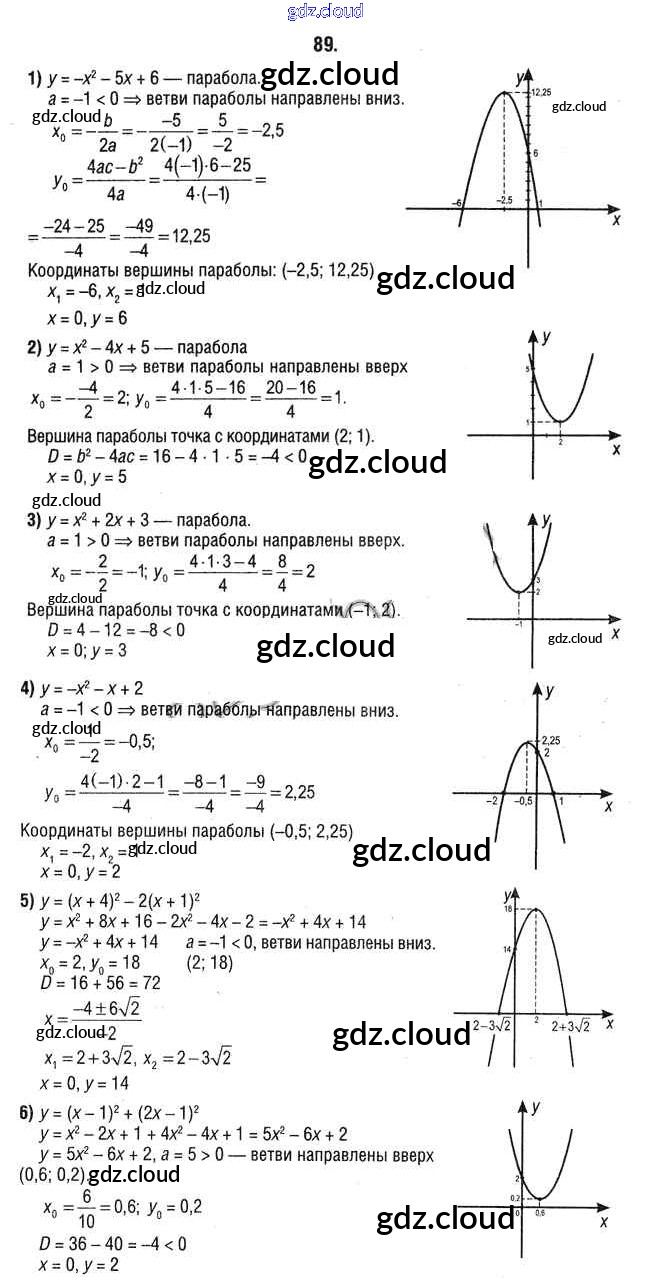 Ответ на задание 89 Учебник Алгебра за 9 (девятый) класс Кузнецова, Муравьева, Шнеперман 2015 онлайн и без номера телефона.