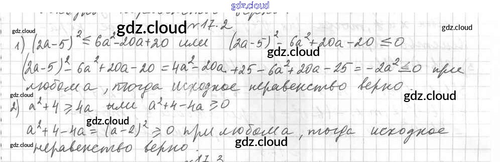 Ответ на задание 17.2 Учебник Алгебра за 9 (девятый) класс Мерзляк, Поляков Алгоритм успеха Углубленный уровень 2020 ФГОС онлайн и без номера телефона.