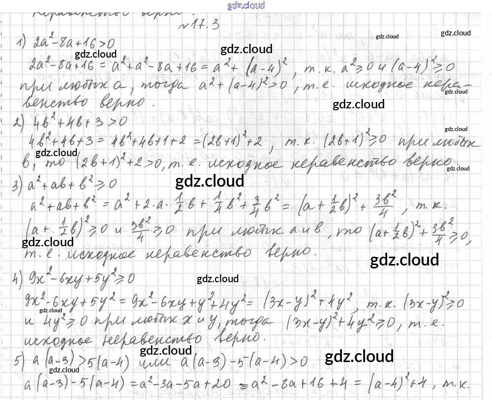 Ответ на задание 17.3 Учебник Алгебра за 9 (девятый) класс Мерзляк, Поляков Алгоритм успеха Углубленный уровень 2020 ФГОС онлайн и без номера телефона.