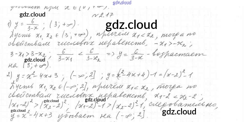 Ответ на задание 2.17 Учебник Алгебра за 9 (девятый) класс Мерзляк, Поляков Алгоритм успеха Углубленный уровень 2020 ФГОС онлайн и без номера телефона.