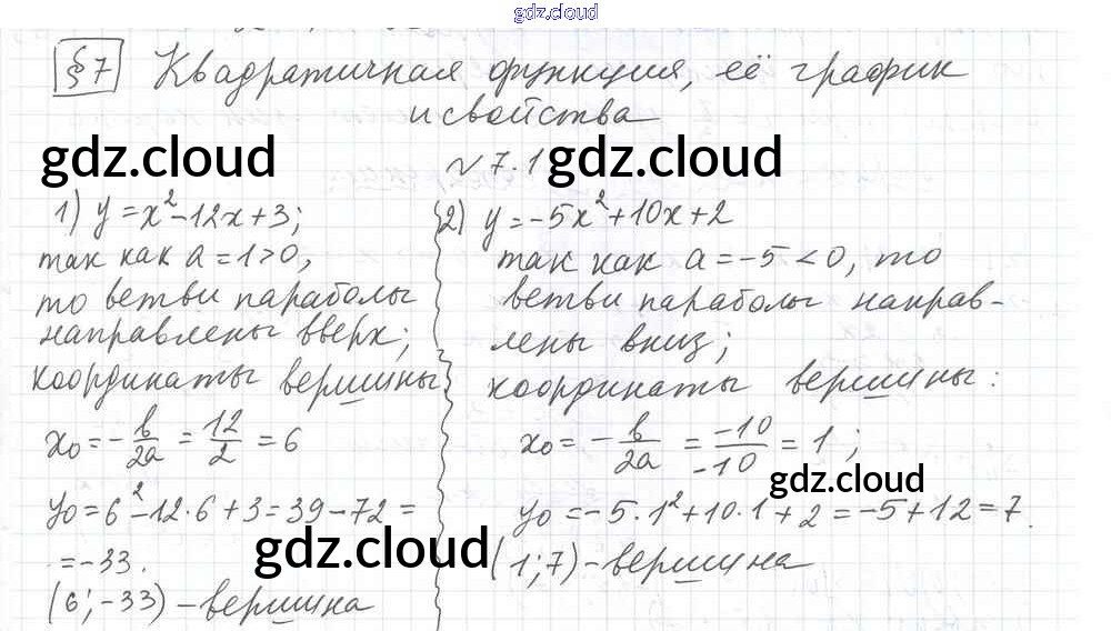 Ответ на задание 7.1 Учебник Алгебра за 9 (девятый) класс Мерзляк, Поляков Алгоритм успеха Углубленный уровень 2020 ФГОС онлайн и без номера телефона.