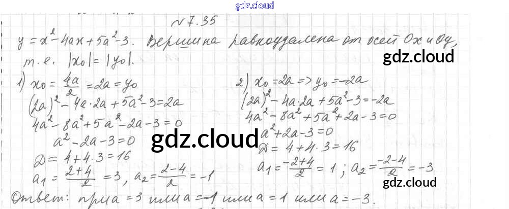 Ответ на задание 7.35 Учебник Алгебра за 9 (девятый) класс Мерзляк, Поляков Алгоритм успеха Углубленный уровень 2020 ФГОС онлайн и без номера телефона.