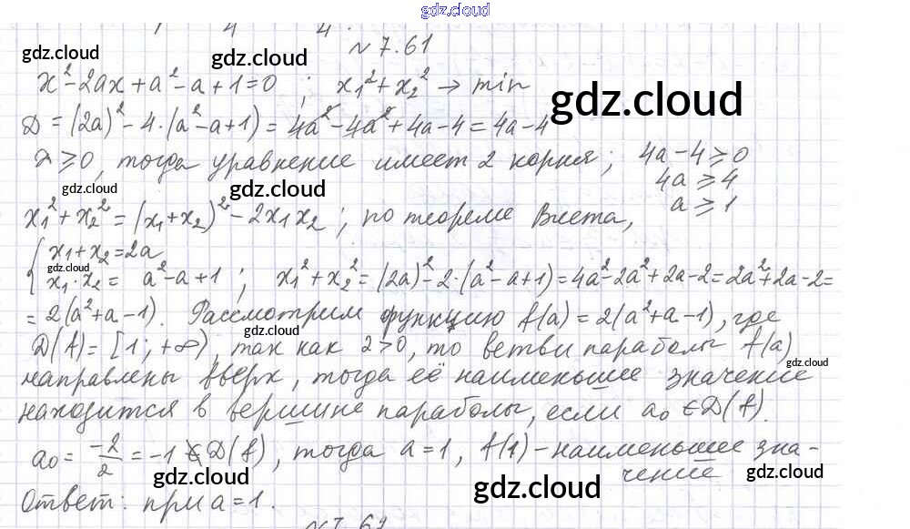 Ответ на задание 7.61 Учебник Алгебра за 9 (девятый) класс Мерзляк, Поляков Алгоритм успеха Углубленный уровень 2020 ФГОС онлайн и без номера телефона.
