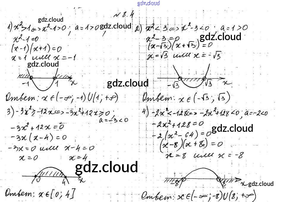 Ответ на задание 8.4 Учебник Алгебра за 9 (девятый) класс Мерзляк, Поляков Алгоритм успеха Углубленный уровень 2020 ФГОС онлайн и без номера телефона.