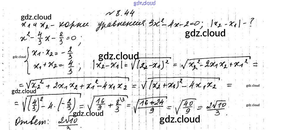 Ответ на задание 8.44 Учебник Алгебра за 9 (девятый) класс Мерзляк, Поляков Алгоритм успеха Углубленный уровень 2020 ФГОС онлайн и без номера телефона.